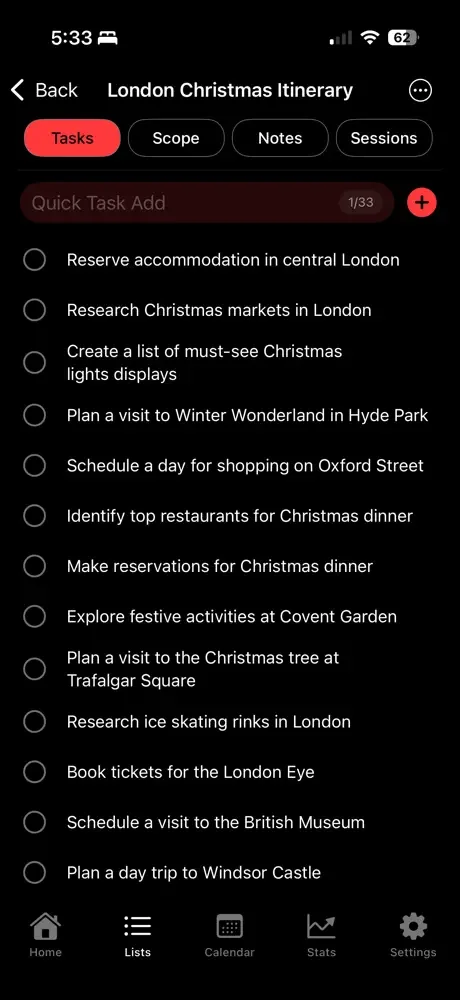 Create AI generated categories with tasks, project scopes, icons, colors, tags and list name. Whether it’s Work, Fitness, Freelance, or Big Dreams - stay organized your way.